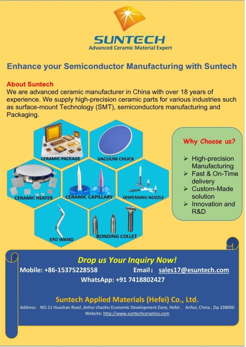 Suntech Advanced Ceramics (Shenzhen) Co. Ltd. is headquartered in Shenzhen of China. We supply high-precision ceramic parts for various industries such as surface-mount Technology (SMT) and semiconductors manufacturing and equipment, medical equipment, flow-control equipment, cosmetics packaging and so on.
