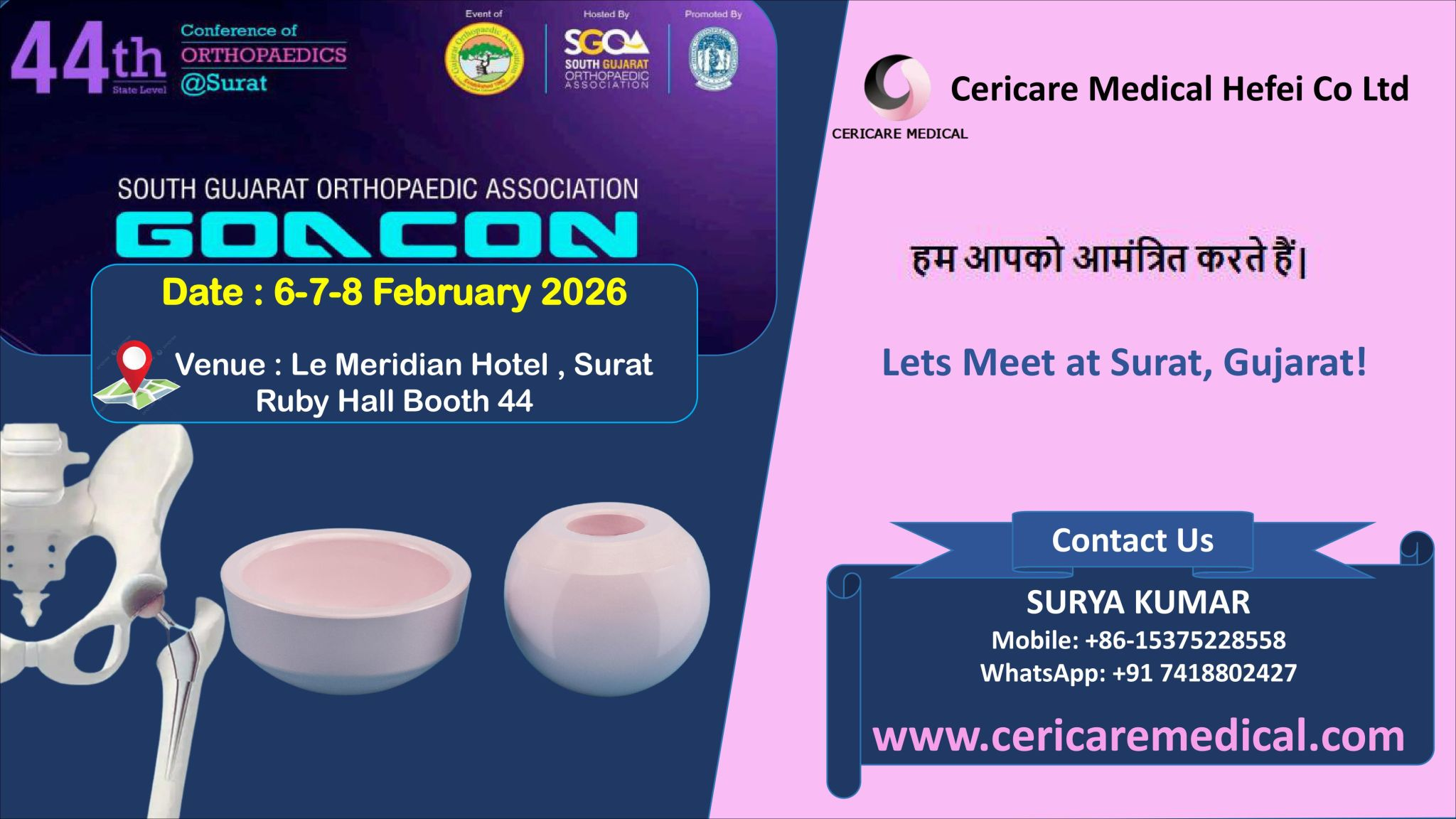 We are proud to participate in GOACON 2026 in Gujarat, showcasing our Ceramic Femoral Head and Liner for Hip Joint Replacement.